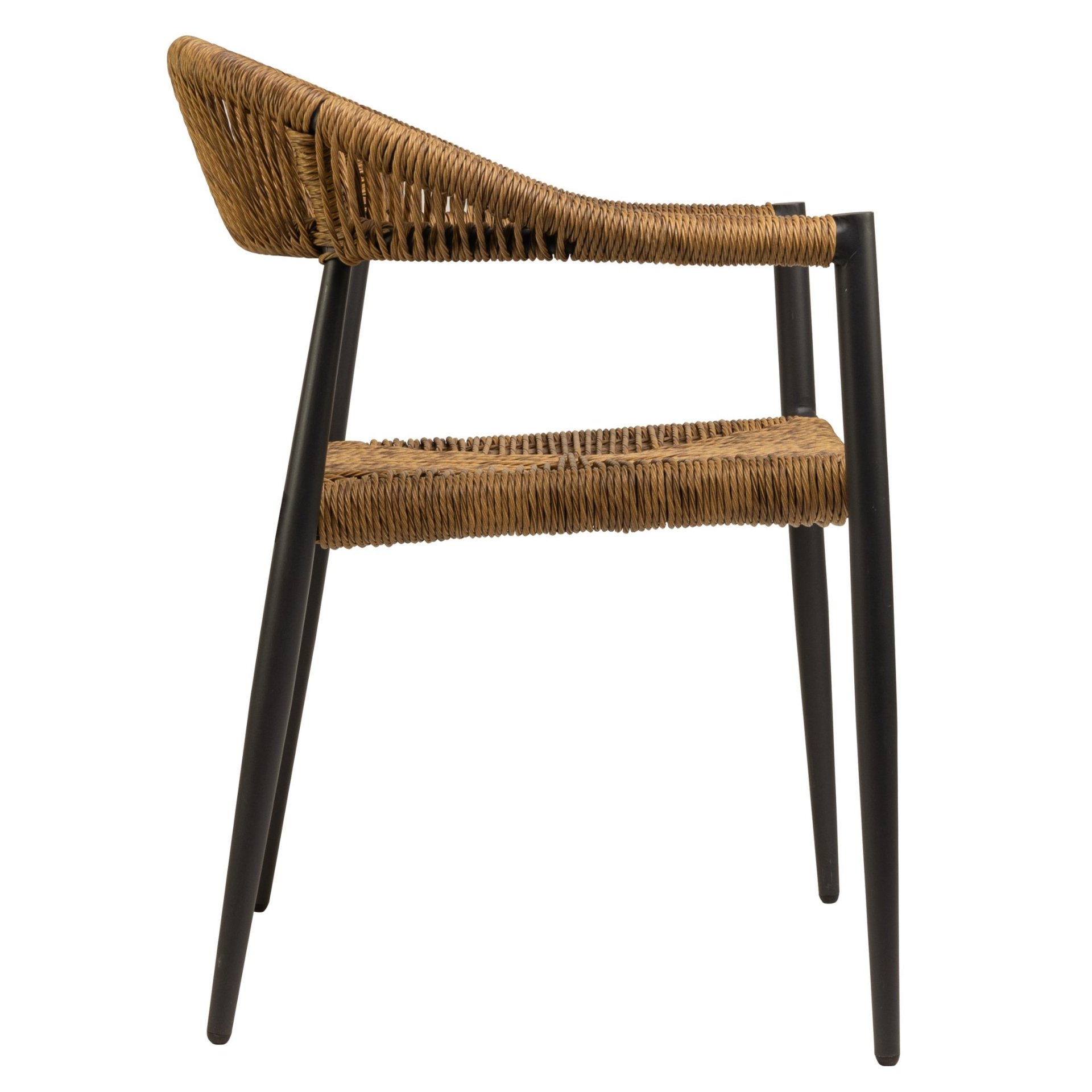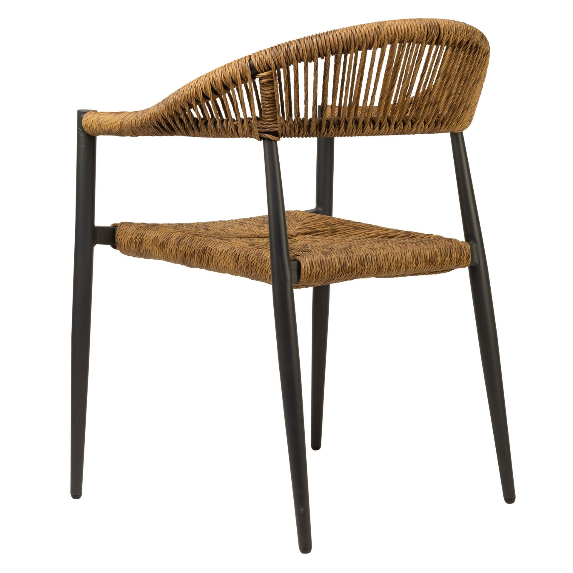 Der Gastronomie Terrassensessel Nessa ist ein Outdoorsessel mit einem Aluminiumgestell pulverbeschichtet und einem Seilgeflecht in Binsenoptik für Restaurant, Bistro, Kaffee, Gastronomie und Hotellerie. Gartensessel dieser Art sind bestens als Gastronomiemöbel geeignet.
