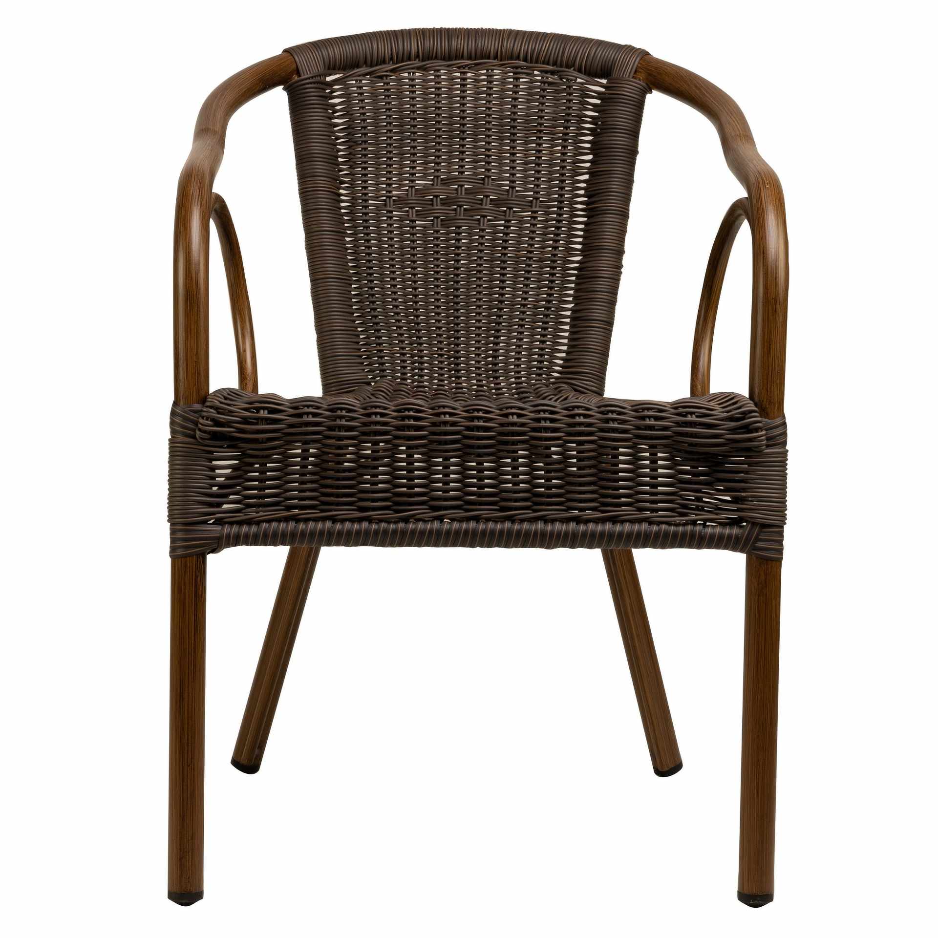 Der Gastronomie Terrassenstuhl Hulda ist ein Outdoorstuhl aus Polyrattan, einem Kunststoffgewebe in Rattanoptik, er ist ein Gewebestuhl mit PVC - Rattan und Aluminiumgestell für Restaurant, Bistro, Kaffee, Gastronomie und Hotellerie. Gartenstühle dieser Art sind bestens als Gastronomiemöbel geeignet.